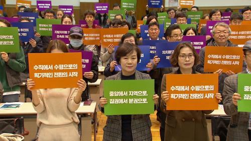 À̳¯ ¼¼¹Ì³ª¿¡¼ Âü¼®ÀÚµéÀº ÇöÀç ±¹È¸¿¡ °è·ù ÁßÀÎ Áö¹æÀÚÄ¡¹ý, Áö¹æÀ̾ç Àϰý¹ý, Áö¹æ¼¼¹ýÀ» Æ÷ÇÔÇÏ´Â ÀçÁ¤ºÐ±Ç °ü·Ã ¹ý·É, ÀÚÄ¡°æÂûÁ¦ ½ÃÇàÀ» À§ÇÑ °æÂû¹ý µî ÀÚÄ¡ºÐ±Ç¹ý·ÉÀÇ ÀÔ¹ýÀ» Ã˱¸ÇÏ´Â °áÀǹ®À» ¹ßÇ¥Çϰí, Âü¼®ÀÚ Àü¿øÀÌ Âü¿©ÇØ ÀÚÄ¡ºÐ±Ç¹ý·ÉÀÇ ÀÔ¹ýÀ» Ã˱¸ÇÏ´Â ÆÛÆ÷¸Õ½º¸¦ ÁøÇàÇß´Ù.