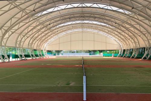 Å״ϽºÀåÀº ´çÁø½Ã °í´ë¸é Á¾ÇտÀå ³» À§Ä¡ÇØ ÀÖÀ¸¸ç, 7°³ ÄÚÆ®(4,413§³)·Î ±âÁ¸ Ŭ·¹ÀÌÄÚÆ® 2¸é°ú ÀÎÁ¶Àܵð 2¸éÀ» ÀüõÈÄ ºñ°¡¸²½Ã¼³ 4ÄÚÆ®(2,379§³)·Î Á¶¼ºÇϰí, ¾ß¿Ü ÀÎÁ¶Àܵð ÇÑ ÄÚÆ®¸¦ Ãß°¡ÇØ ¾ß¿Ü 3¸é(2,034§³)À̸ç, ÀÌ¿¡ ±âÁ¸ ¼±¼ö¿ë ÄÚÆ® 4¸é°ú ´õºÒ¾î ÃÑ 11¸éÀ¸·Î ¿î¿µÇÏ°Ô µÆ´Ù.