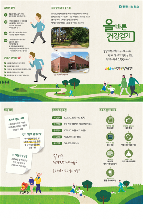 ¿Ã ¹Ù¸¥ °È±â µ¿¾Æ¸® ¿î¿µÀº ¿Â¶óÀÎ ¹× ¿ÀÇÁ¶óÀÎ È«º¸¸¦ ÅëÇØ 10¿ù 6ÀϺÎÅÍ Âü¿©ÀÚ¸¦ ¸ðÁýÇß°í µ¿¾Æ¸® Ȱµ¿Àº 10¿ù 12ÀϺÎÅÍ ¾à 3°³¿ù °£ ¡®°ÈÁꡯ ¾Û ¼Û¾Ç°Ç°ÁõÁø¼¾ÅÍ °ø½Ä Ä¿¹Â´ÏƼ¸¦ ÅëÇØ º»°Ý ¿î¿µ µÈ´Ù. ¼¾ÅÍ´Â ÁֹεéÀÇ ÀÏ»ó »ýȰ ¼Ó °È±â ¿îµ¿À» È®»êÇÏ°í °Ç° ÇàŸ¦ °³¼±Çϱâ À§ÇØ °È±â Âü¿©ÀÚ¿¡°Ô ´Ù¾çÇÑ ¼ºñ½º¸¦ Áö¿øÇÒ ¿¹Á¤ÀÌ´Ù.