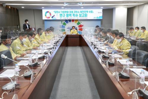 À̳¯ º¸°íȸ´Â ±èÈ«Àå ´çÁø½ÃÀåÀÌ Á÷Á¢ ÁÖÀçÇϸç Çѱ¹È¯°æ°ø´Ü Á¶Áø¿µ °úÀå°ú ´Ù¾çÇÑ ½Ã¹Î»çȸ°¡ Âü¼®ÇØ ´çÁø½ÃÀÇ ±âÈĺ¯È ´ëÀÀÇöȲ°ú Àü¸ÁÀ» ºÐ¼®Çϰí ÇâÈÄ ¿¹°ßµÇ´Â ±âÈĺ¯È¿¡ µû¸¥ ºÎ¹®º° ´ëÀÀ Àü·« ¼ö¸³ ¹æÇâ µîÀ» °áÁ¤Çß´Ù.