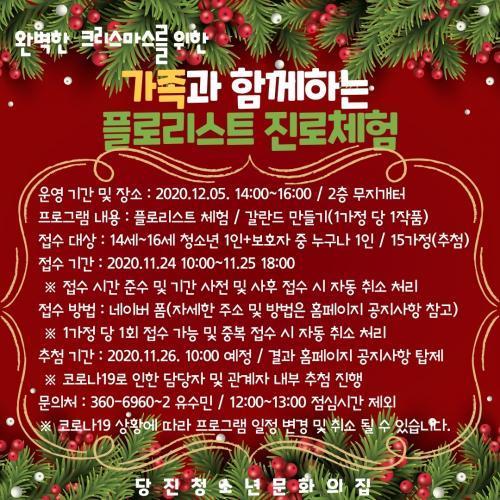 Å©¸®½º¸¶½º¸¦ Å׸¶·Î Ç÷θ®½ºÆ® üÇèÀ» ÁøÇà ¿¹Á¤À¸·Î 11¿ù 24Àϰú 25ÀÏ ¿Â¶óÀÎ(³×À̹öÆû) Á¢¼ö ¹× 11¿ù 26ÀÏ Âü°¡ÀÚ Ãß÷°ú 12¿ù 5ÀÏ ¿ÀÈÄ 2½ÃºÎÅÍ 2½Ã°£ µ¿¾È ÇÁ·Î±×·¥ ¿î¿µÀÇ ÀÏÁ¤À¸·Î ÁøÇàµÈ´Ù.