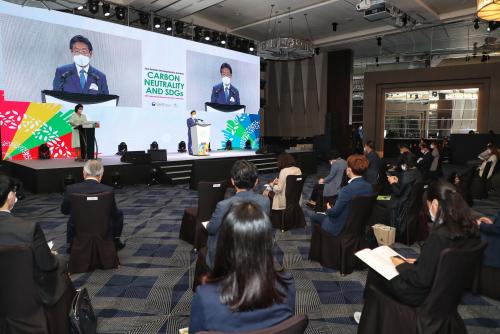À̳¯ Çà»ç´Â ÇÑÁ¤¾Ö ȯ°æºÎ Àå°üÀÇ °³È¸»ç¿Í ¹Ú³²Ãá ÀÎõ½ÃÀåÀÇ È¯¿µ»ç¸¦ ½ÃÀÛÀ¸·Î 2030 SDGs ´Þ¼ºÀ» À§ÇÑ ¡®Decade of Action Çѱ¹¡¯ ·ÐĪ, UNOSDÀÇ »ç¾÷ ¼Ò°³, °¢°èÀÇ ¸Þ½ÃÁö Àü´Þ°ú ÇÔ²² ¡®±âÈÄÇൿ°ú SDGs ÀÌÇà°£ÀÇ ½Ã³ÊÁö¡¯¿Í ¡®2050 ź¼ÒÁ߸³¡¯À» À§ÇÑ ±¹Á¦µ¿Çâ°ú »ç·Ê ¹ßÇ¥ ¹× Åä·Ð µîÀÌ ÁøÇàµÆ´Ù.