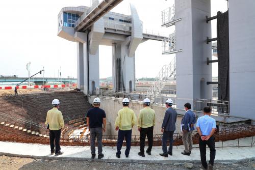 ÇÑÆí Çѱ¹³ó¾îÃ̰ø»ç¿¡¼ ½ÃÇàÇÏ´Â »ð±³È£ ¹è¼ö°©¹® È®Àå°ø»ç´Â ÁýÁßÈ£¿ì µî ±âÈĺ¯È ´ëºñ ¼öÇØ¿¹¹æÀ» À§ÇØ ¹è¼ö°©¹®À» ±âÁ¸ 120m¿¡¼ 240m·Î È®ÀåÇÏ´Â »ç¾÷À¸·Î ÃÑ»ç¾÷ºñ 834¾ï ¿ø¿¡ ÇöÀç 88% °øÁ¤ÀÌ ÁøÇàµÆÀ¸¸ç, ¿ÃÇØ 12¿ù Áذø ¿¹Á¤ÀÌ´Ù.