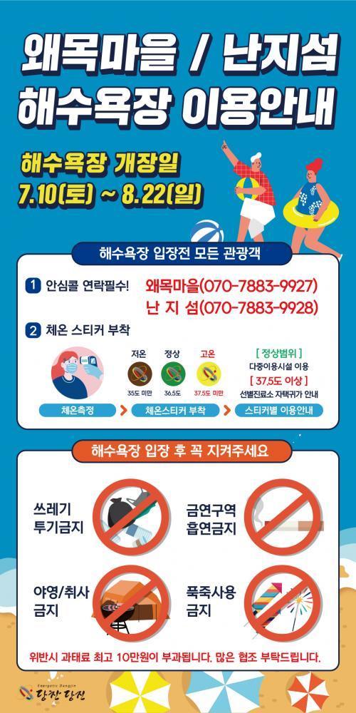 ½Ã´Â¡¸Çؼö¿åÀå ÀÌ¿ë ¹× °ü¸®¿¡ °üÇÑ ¹ý·ü¡¹¿¡ µû¶ó ÇØ¼ö¿åÀ屸¿ª ³» Ãë»çÇàÀ§ ¹× ¾ß¿µ°ú ºÒ²É³îÀÌ µîÀº ±ÝÁöµÅ ÀÖÀ¸¸ç, ±×µ¿¾È ¹æÄ¡µÅ ¿Â ÇØ¼ö¿åÀå ³» ÅÙÆ® µîÀ» °·ÂÇÏ°Ô ´Ü¼ÓÇÑ´Ù´Â ¹æÄ§ÀÌ´Ù.