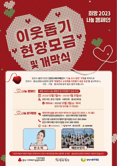 ±âºÎ¸¦ ¿øÇÏ´Â °³ÀÎ ¶Ç´Â ´Üü, ±â¾÷Àº ½Ãû »çȸº¹Áö°ú ÇູŰ¿òÁö¿øÆÀ(¢Ï041-350-3660,4), ´çÁø½Ã º¹ÁöÀç´Ü(¢Ï041-360-3005) ¶Ç´Â À¾¸éµ¿ ÇàÁ¤º¹Áö¼¾ÅÍ¿¡ ±âŹÇϰųª °øµ¿¸ð±Ý Á¢¼ö °èÁÂ(³óÇù 301-0317-8719-21, Ãæ³²µµ°øµ¿¸ð±Ýȸ)¿¡ ÀÔ±ÝÇÏ¸é µÈ´Ù.