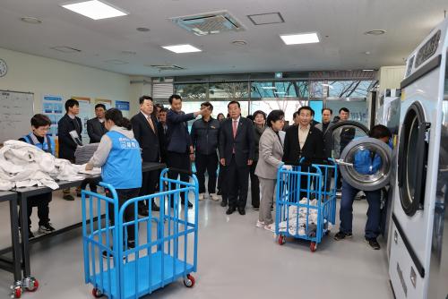 ½Ã¼³ ³»¿¡´Â ÇÏ·ç 600¹úÀÇ ÀÛ¾÷º¹ ¼¼Å¹À» ¼ÒÈÇÒ ¼ö ÀÖ´Â ÀÛ¾÷º¹ ¼¼Å¹À» À§ÇÑ »ê¾÷¿ë¼¼Å¹±â 3´ë, °ÇÁ¶±â 3´ë, µå¶óÀÌÅ©¸®´× 1´ë°¡ ºñÄ¡ÇßÀ¸¸ç ¼¼Å¹ºñ´Â ÇϺ¹ 500¿ø, µ¿º¹Àº 1,000¿øÀ¸·Î Ã¥Á¤Çϰí ÀÛ¾÷º¹ ¼ö°Å¸¦ À§ÇÑ ¹è´Þ Â÷·® 2´ëµµ °®Ãß°í ½Ã¹ü¿î¿µÀ» °ÅÃÄ À̹ø ´ÞºÎÅÍ º»°ÝÀûÀ¸·Î ¿µ¾÷À» ½ÃÀÛÇß´Ù.