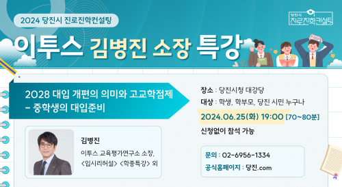 À̹ø Ư°Àº ÀÌÅõ½º ±³À°Æò°¡ ¿¬±¸¼Ò ±èº´Áø ¼ÒÀåÀ» ÃÊÃ»ÇØ ¡®2028 ´ëÀÔ °³ÆíÀÇ ÀÇ¹Ì¿Í °í±³ÇÐÁ¡Á¦¡¯¶õ ÁÖÁ¦·Î ÁøÇàµÉ ¿¹Á¤ÀÌ´Ù. Áö¿ª ³» ÇлýÀ̳ª Çкθð´Â ¹°·Ð °ü½É ÀÖ´Â ½Ã¹ÎÀÌ¸é ´©±¸³ª ´çÀÏ ¼±Âø¼ø ÀÔÀåÀÌ °¡´ÉÇÏ´Ù.