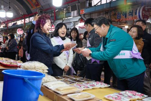 5ÀÏ ¹æ¹®ÇÑ µ¿»ó½ÃÀå¿¡¼­´Â °í¹°°¡ ¼Ó¿¡¼­ ¼Òºñ À§ÃàÀ¸·Î ¾î·Á¿òÀ» °Þ°í ÀÖ´Â »óÀεéÀÇ °íÃæÀ» µéÀ¸¸ç ¡°È¯À²°ú ¹°°¡°¡ µ¿½Ã¿¡ Ä¡¼Ú´Â Èûµç °æÁ¦ »óȲ ¼Ó¿¡¼­µµ ¹¬¹¬È÷ ÀüÅë½ÃÀåÀ» ÁöÄÑÁֽô »óÀε鲲 °¨»çµå¸°´Ù¡±¸ç °Ý·ÁÇß´Ù. ¾Æ¿ï·¯ ½ÃÀåÀ» ãÀº ½Ã¹ÎµéÀ» ¸¸³ª ´ö´ãÀ» ³ª´©¸ç ÀüÅë½ÃÀå À̿뿡 ´ëÇÑ °í¸¶¿òÀ» ÀüÇßÀ¸¸ç À庸±â·Î ±¸ÀÔÇÑ ¹°Ç°Àº Áö¿ª º¹Áö½Ã¼³¿¡ Àü´ÞÇß´Ù.